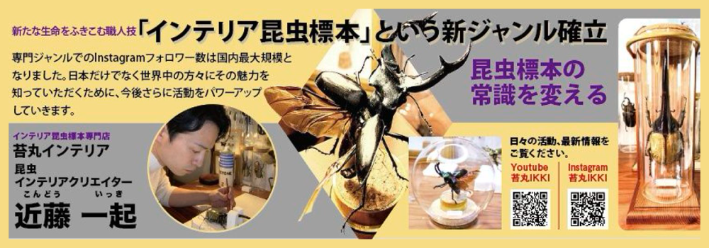 新たな生命をふきこむ「インテリア昆虫標本」という新ジャンルを確立したインテリア昆虫標本専門店。日本だけでなく世界中へその魅力を発信中!